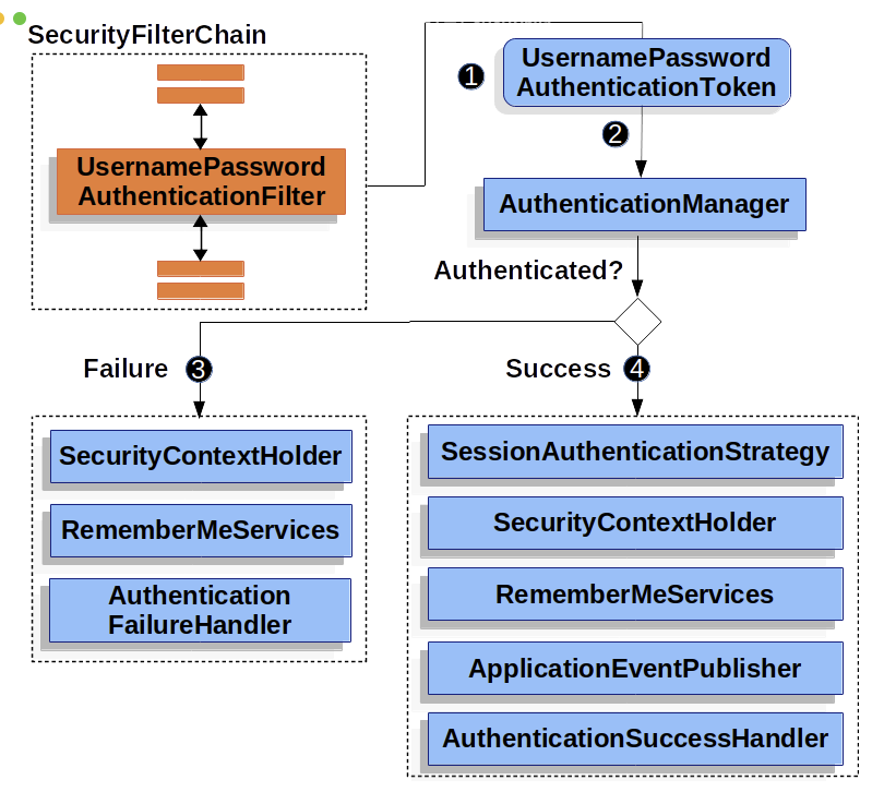결과적으로 위의 흐름은 아래의 Spring Security 인증 아키텍처와 동일하다.
