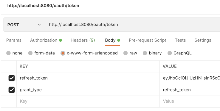 위에서 발급된 리프레쉬 토큰을 넣어줍니다.