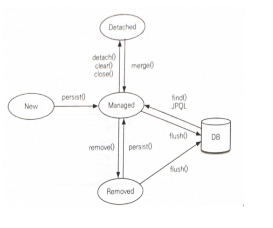 • 준영속(detached) : 영속성 컨텍스트에 저장되었다가 분리된 상태