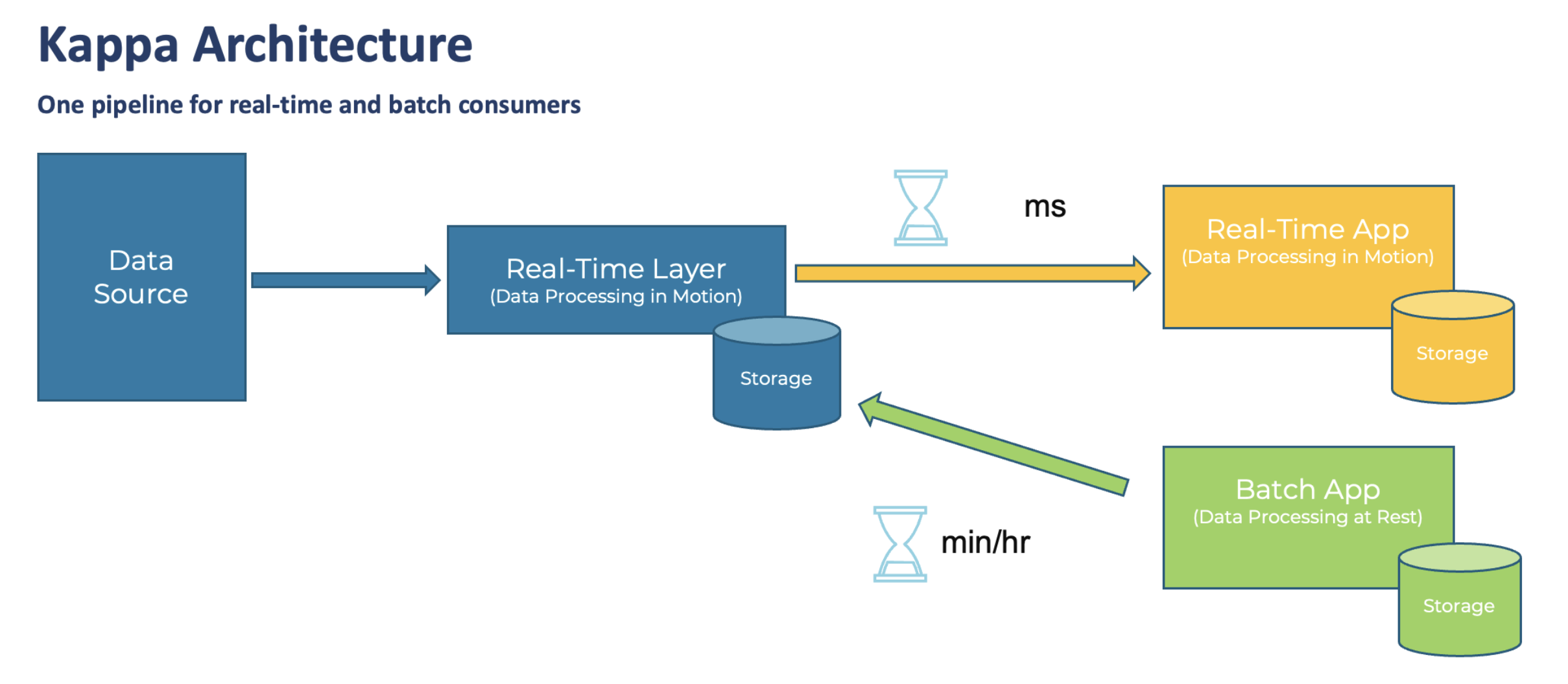 람다 아키텍처에서 단점으로 부각된 로직의 파편화와 디버깅, 배포, 운영 분리에 대한 이슈를 제거하기 위해 배치 레이어를 제거!