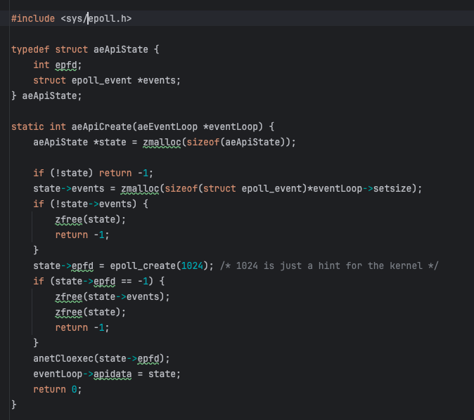 static int aeApiCreate(aeEventLoop *eventLoop) {