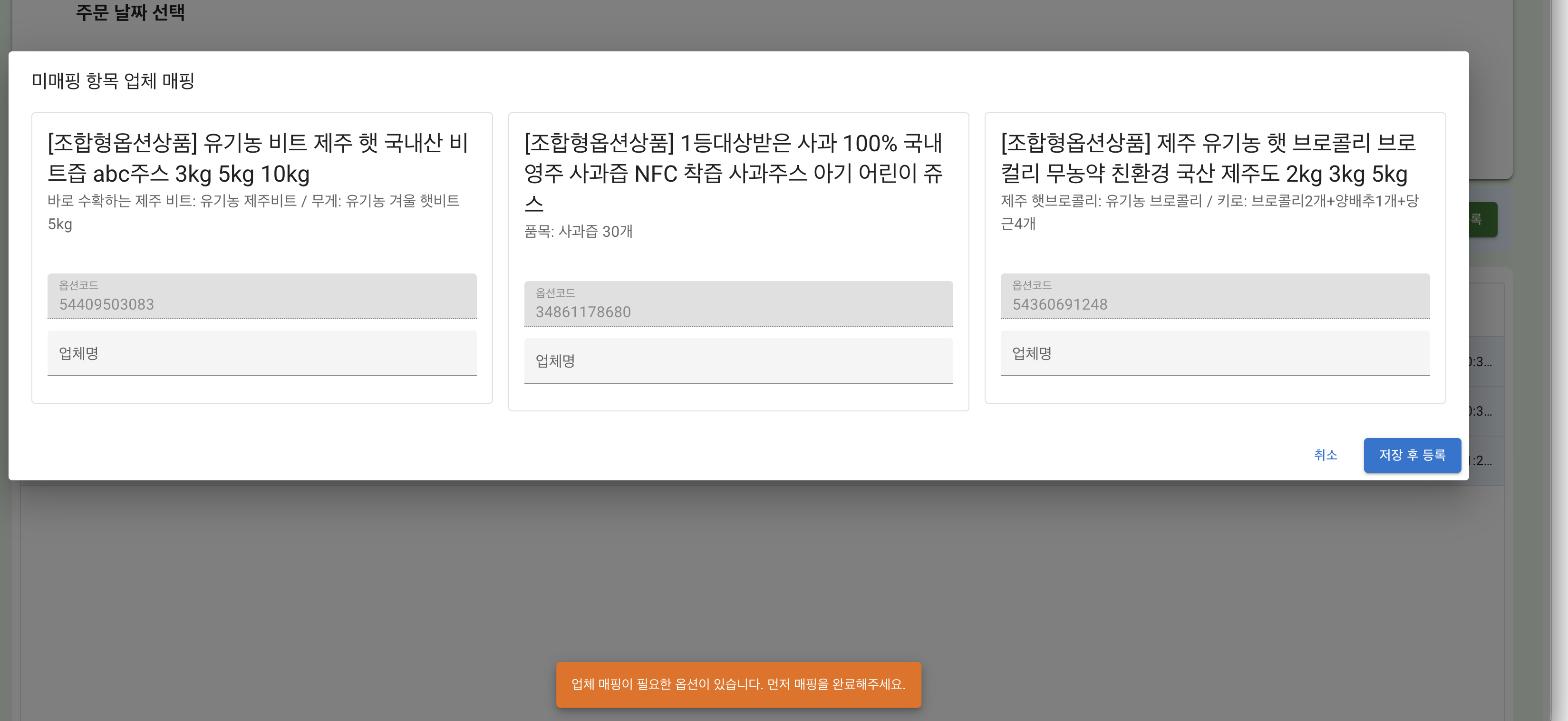 아래처럼 업체명을 수기로 등록을 하던지 혹은 골라서 매핑이 가능하다.
