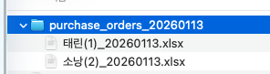 이 전 발주기능에 이어서 이번 기능은 업체별 발주엑셀(주문엑셀)이 만들어지는데