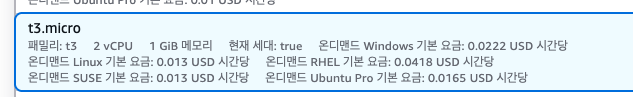 t3.mirco는 리눅스 기본요금: 0.013USD 시간당