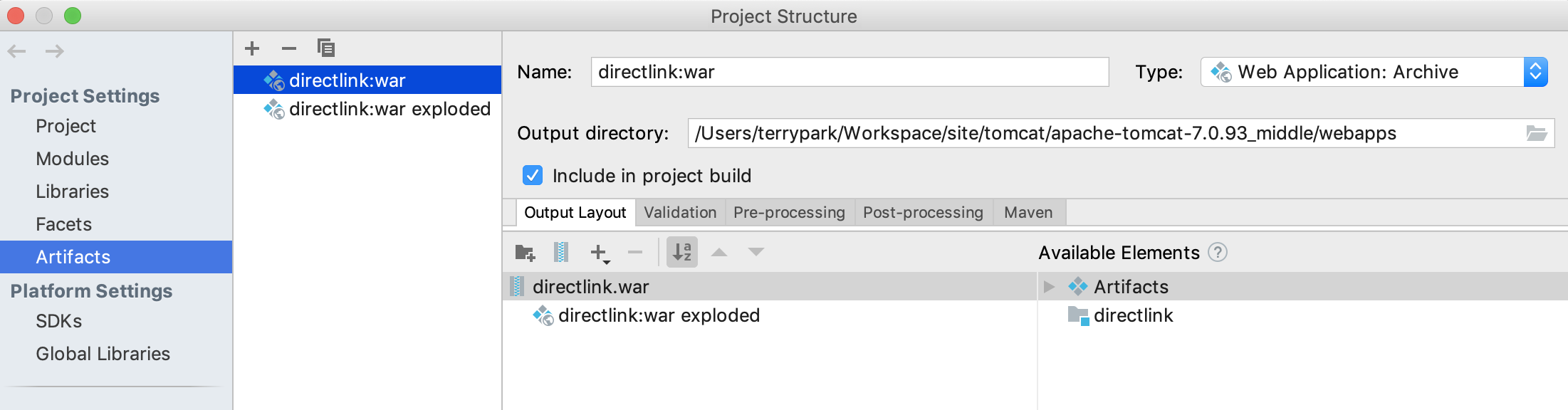 Output directory를 톰캣 webapps로 맞춰주면 된다.