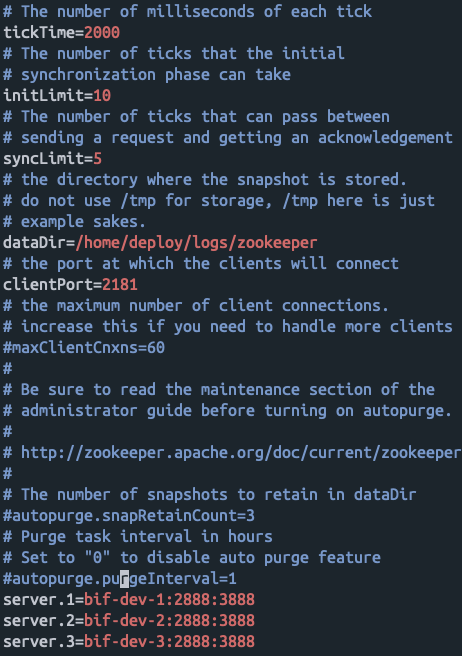 - bif-dev-3서버 : echo 3 > ../logs/zookeeper/myid