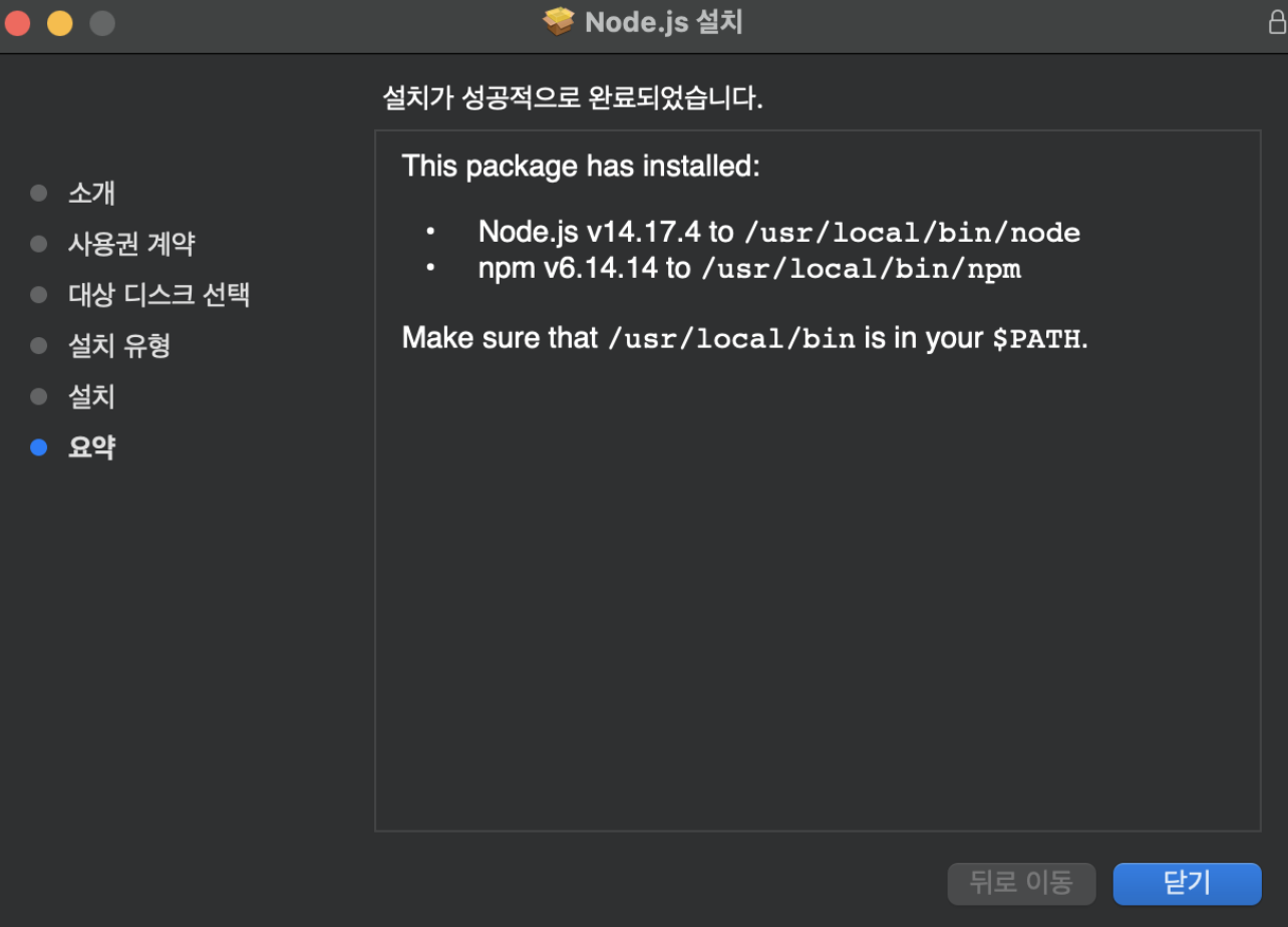 - node.js 설치 : npm 때문에 필요하다.
