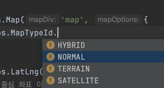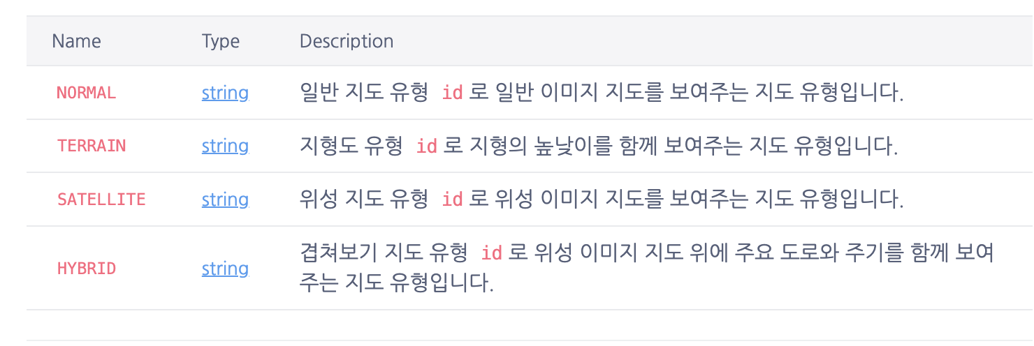 - MapOptions를 이용하거나 setMapTypeId메서드를 이용 해야 함.