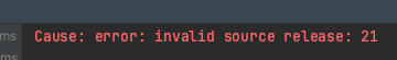 error : Cause: error: invalid source release:21