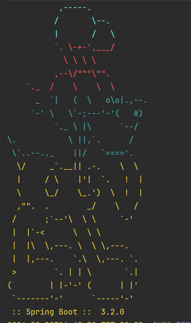 위처럼 나오려면 resources밑에 banner.txt를 넣으면 동작합니다:)