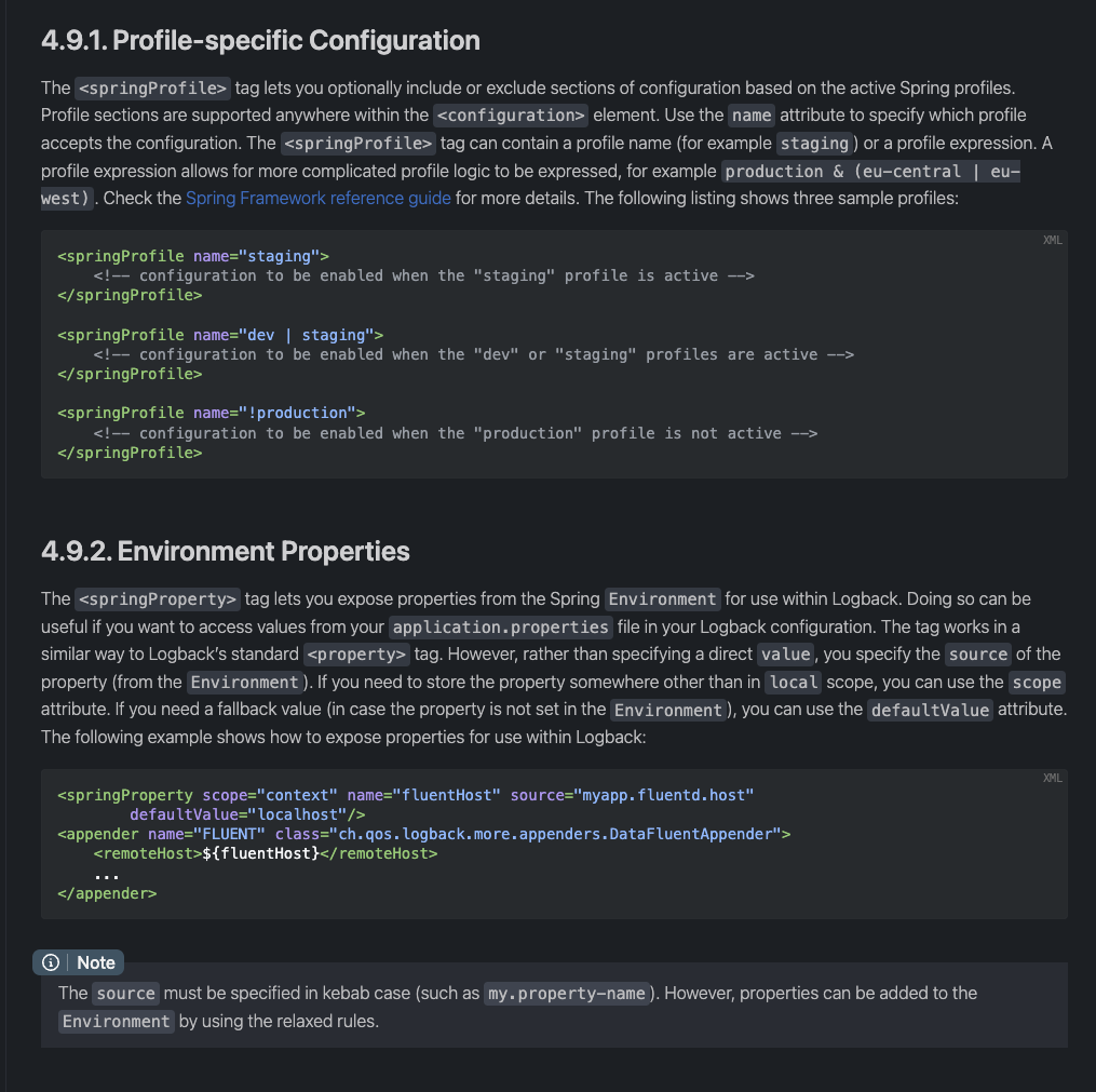 https://docs.spring.io/spring-boot/docs/current/reference/html/features.html#features.logging.logback-extensions.profile-specific