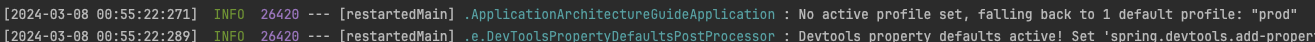 : No active profile set, falling back to 1 default profile: "prod" // 메시지