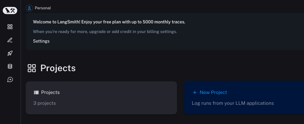 https://smith.langchain.com/ 에서 로그인을 해줍니다.