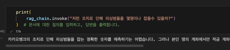 다음으로는 rag_chain.invoke를 통해 질의를 해줍니다.