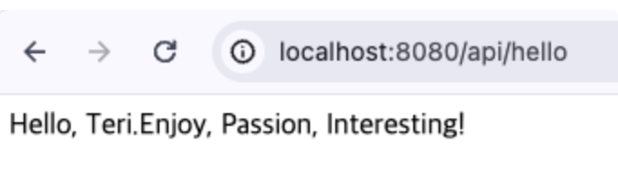 return "Hello, Teri.Enjoy, Passion, Interesting!"