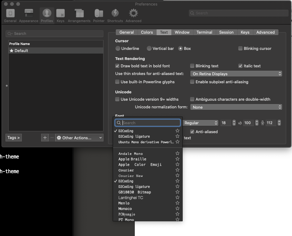 서체 설치 후 iTerm Preferences에서 그냥 골라주면 끝~