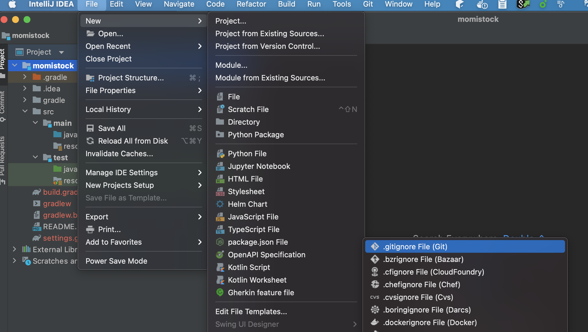.gitignore에서 .gradle과 .idea를 넣어줍니다.