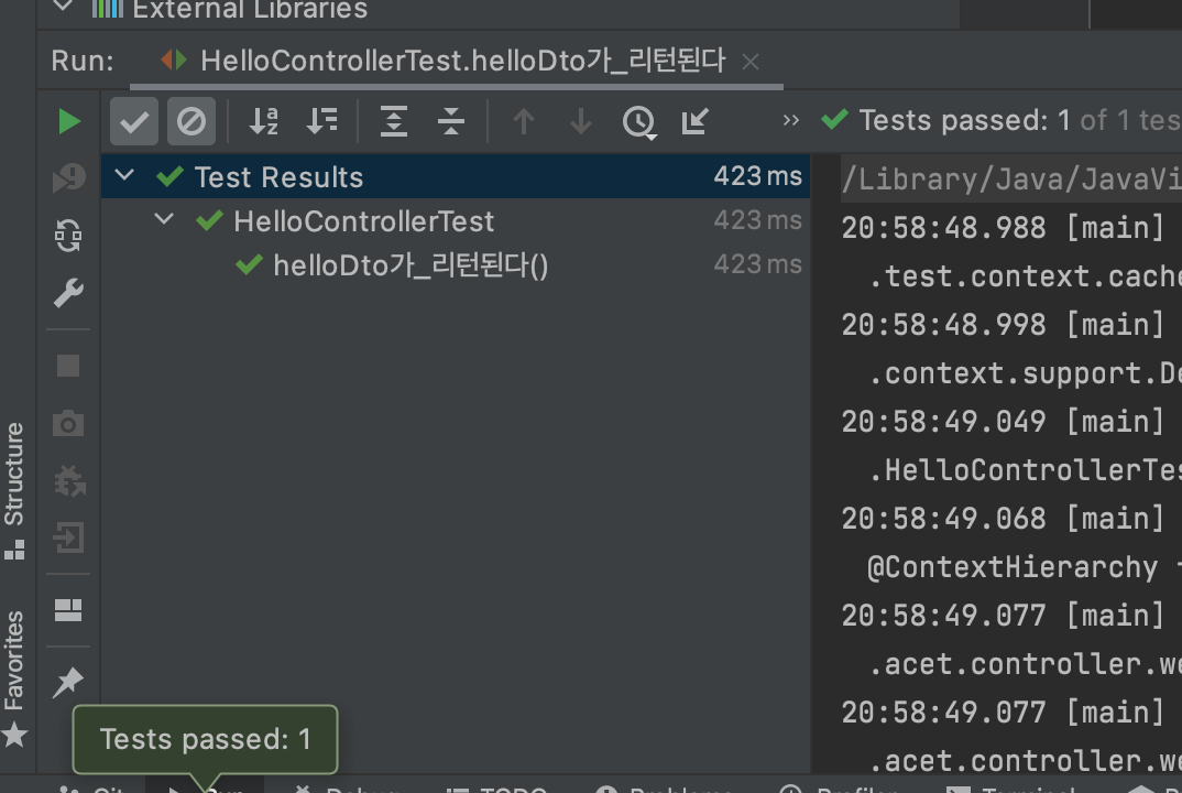 테스트를 돌려서 아래와 같이 통과하면 됩니다!