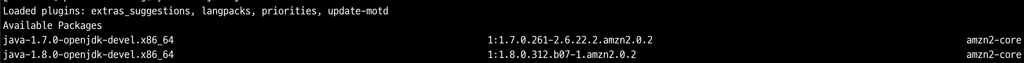 yum list java*jdk-devel 로 리스트를 가져왔더니..아래와 같이 2개의 패키지가 조회 되었다.
