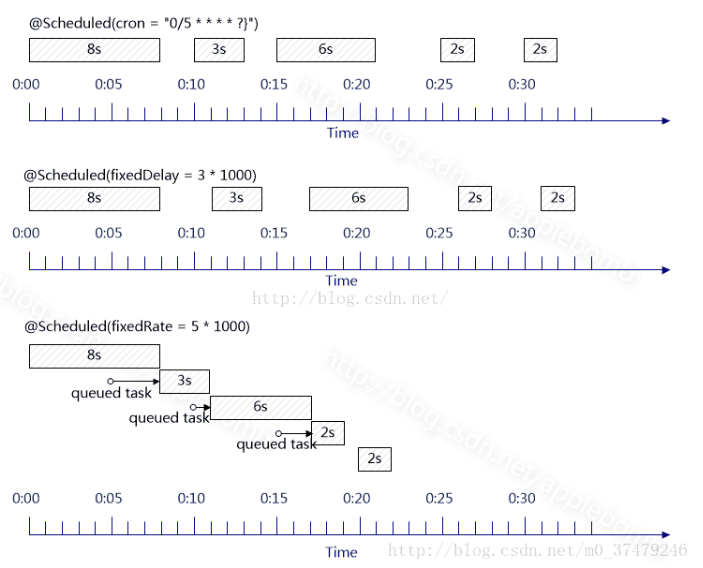 fixedDelay : millisecondes 단위로, 이전 작업이 끝난 시점으로부터 고정된 시간을 설정한다.