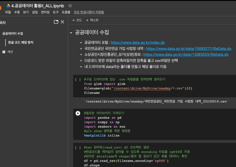 처음에는 파이썬 기초 부분으로 Colaboratory로 바로바로 실행하며 실습 하였습니다 ㅎㅎ