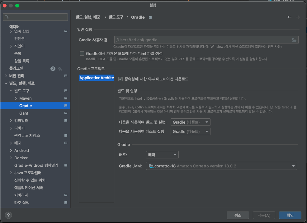 그래서 gradle쪽을 살펴보니..jdk 18로 설정되어있었다.