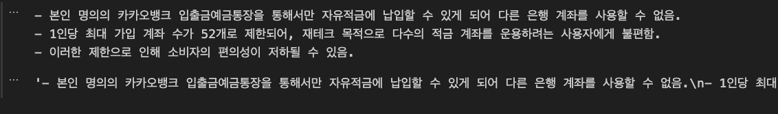 - 즉, context에 들어가는 내용은 위에서 vector store에서 검색(retriever)한 단락 입니다.
